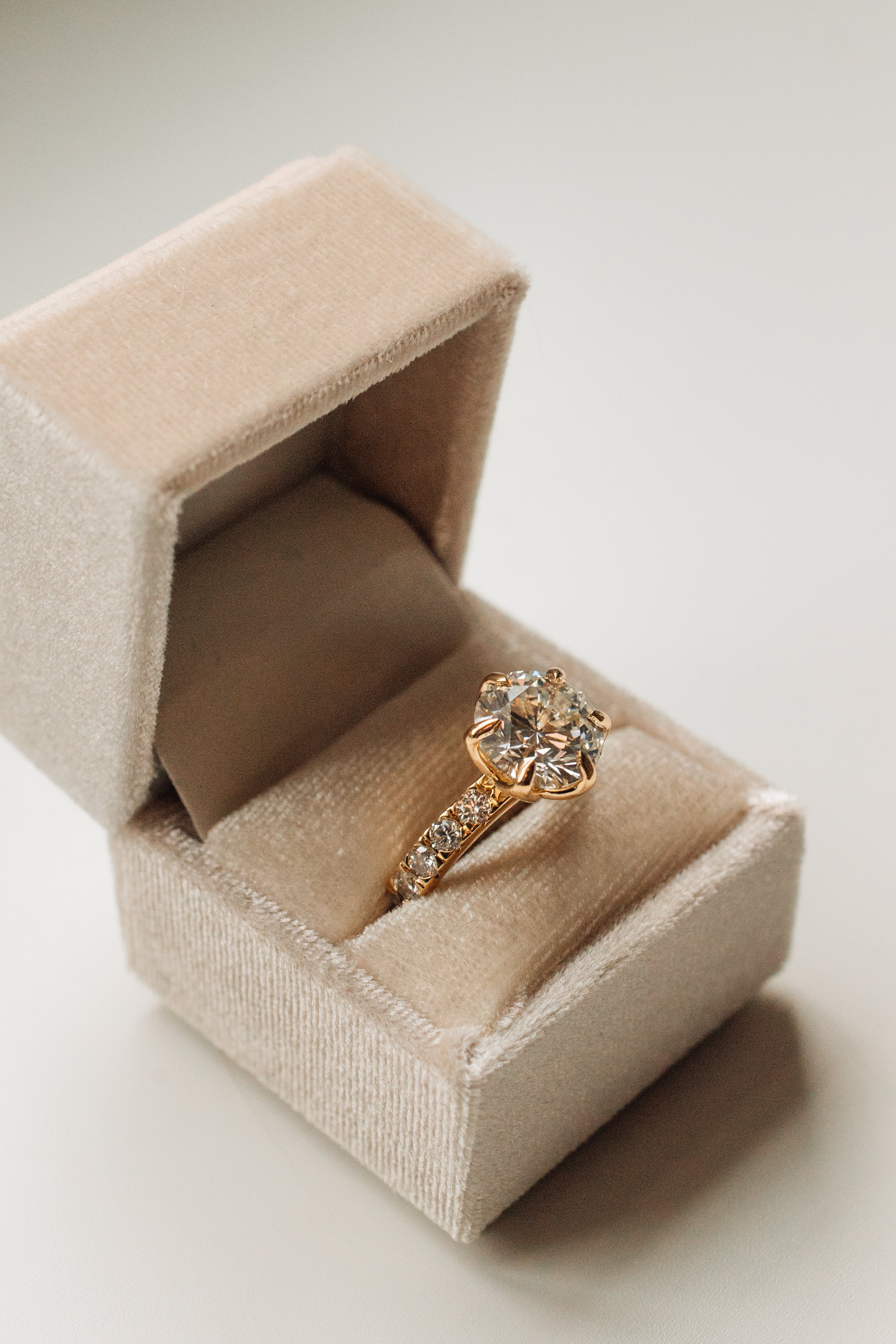 At the heart of Serena lies an approximate 3-carat duet rose cut moissanite in DEF color, cradled by six delicate claw prongs. Four petite marquise lab-grown diamonds and a pair of kite-shaped lab diamonds accent the setting, creating a harmony of symmetry and sparkle.