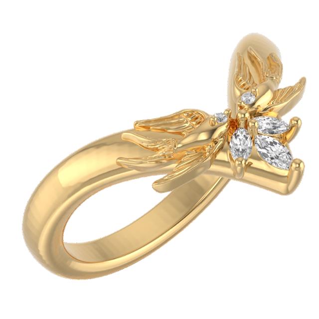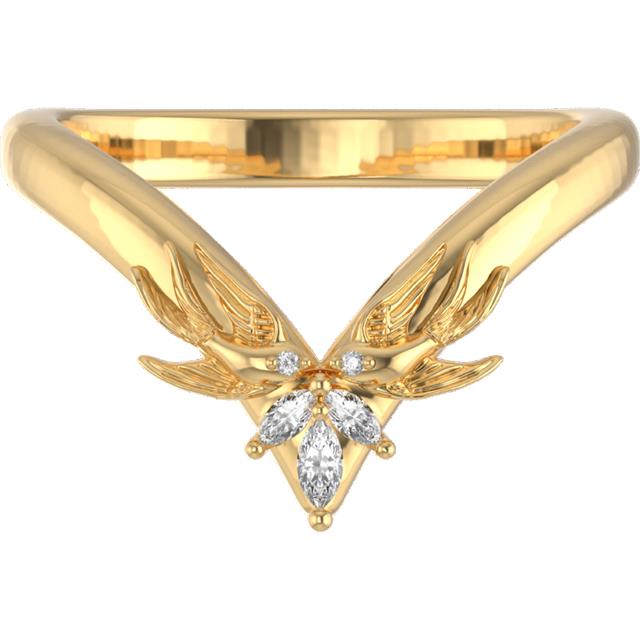 A timeless ode to unity and devotion, the Lynnet Band is sculpted in 14k yellow gold and adorned with two hand-carved swallows; each set with a glimmering lab-grown diamond at its heart. Their wings meet in poised symmetry, forming a graceful contour that embraces both strength and tenderness.