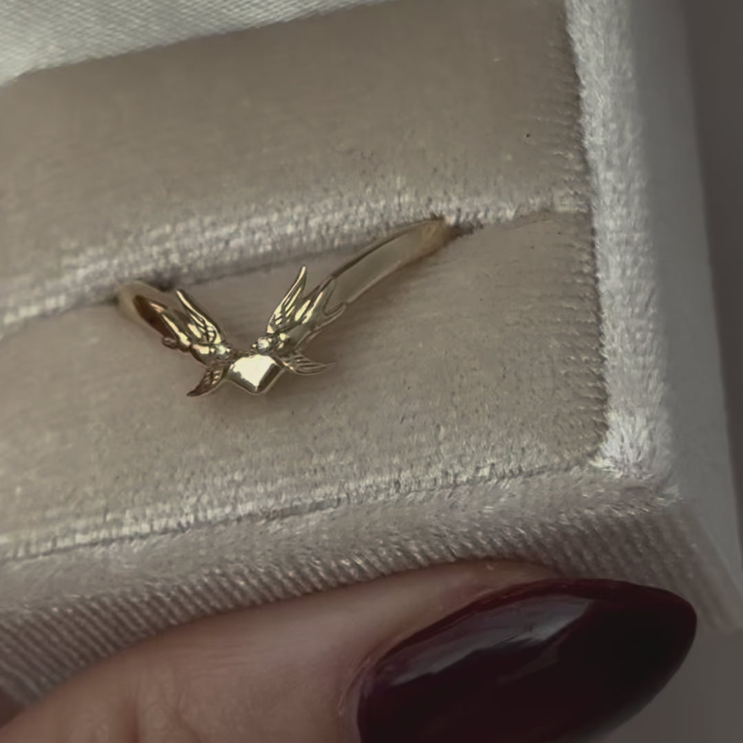 Symbolizing loyalty, freedom, and the promise of return, the swallows embody a love that always finds its way home. Whether worn alone or paired as a contour band, Lynnet Petite is a quiet celebration of devotion — where two souls meet at the heart before taking flight together