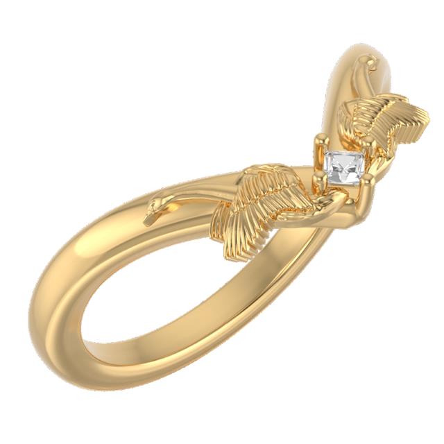 Delicate swan motifs frame the diamond, their sculpted wings meeting in perfect symmetry. Long associated with lifelong partnership and fidelity, the swans of Odette serve as a timeless emblem of love chosen, promised, and protected. And fittingly for a ring named Odette, this design crowns its wearer with a princess cut diamond, because every love story deserves a little fairytale energy.